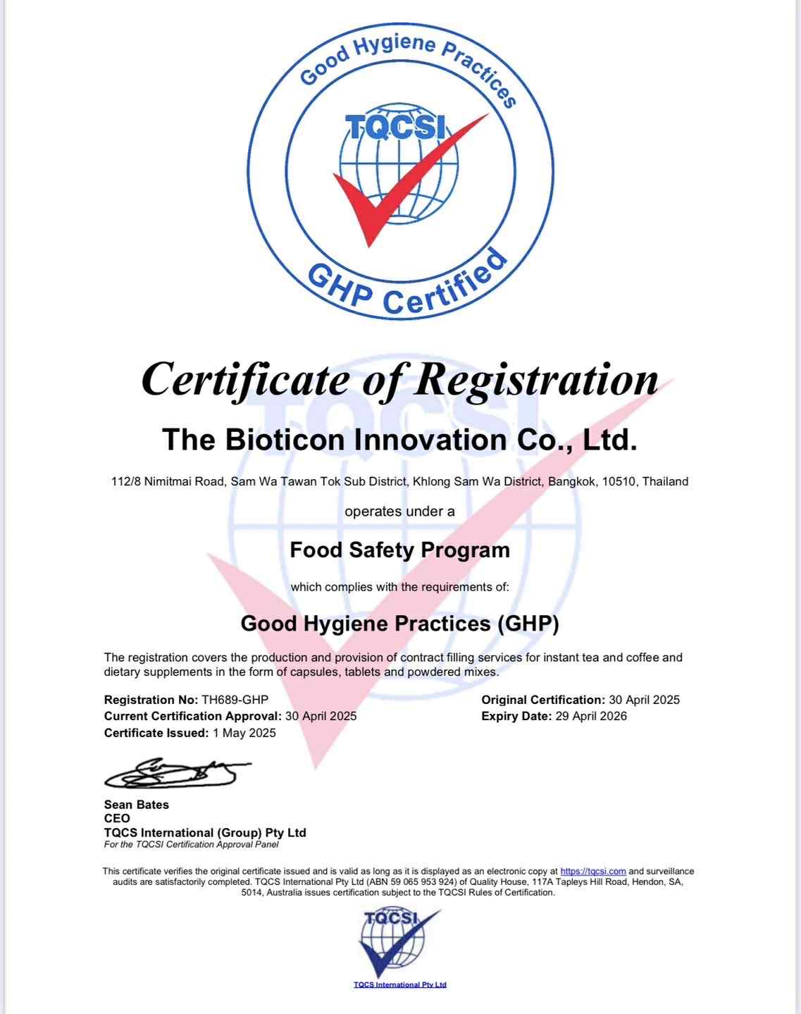 เราช่วยให้คุณเป็นเจ้าของกิจการแบบง่ายๆ โดยไม่ต้องใช้ทุนมาก รับรองการผลิตด้วยมาตรฐานสากลระดับโลก GMP / GHPs / HACCP / HALAL / ISO22000 การผลิตถูกควบคุมและตรวจสอบในทุกขั้นตอน ทำให้มั่นใจได้ว่าผลิตภัณฑ์ทุกชิ้น มีคุณภาพสูงสุด ถูกหลักสากล และปลอดภัย